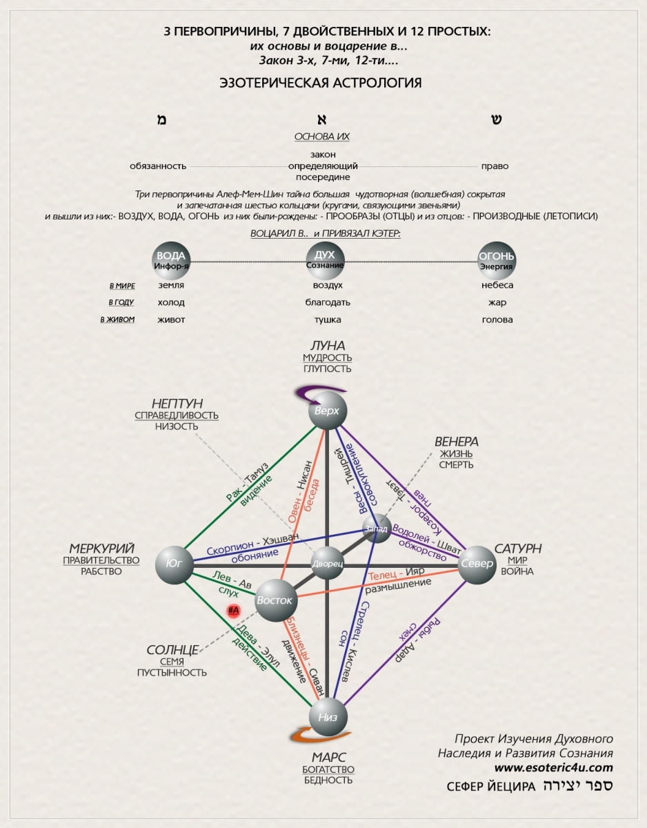 Глава: Уровни Сознания людей из книги "Сефер Йецира": 12 простых, 7 двойственных, 3 первоосновы